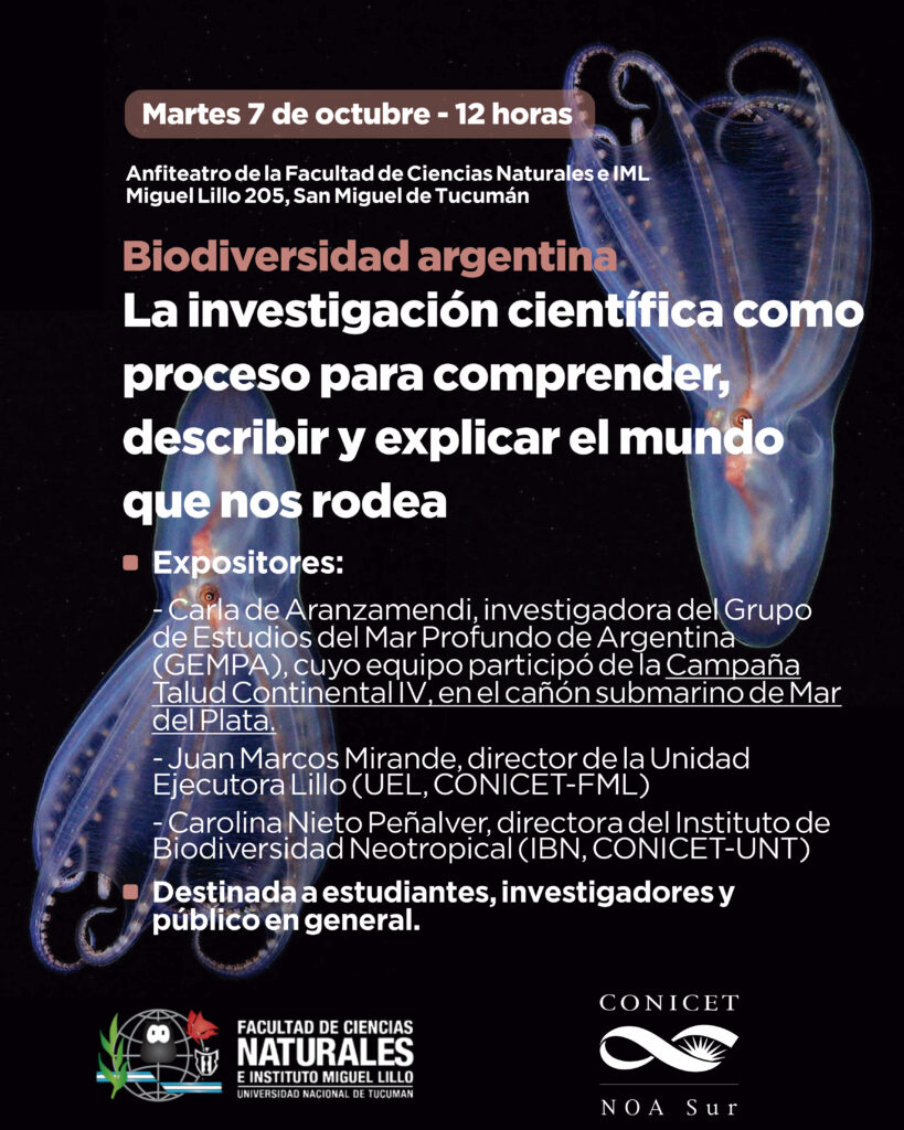 La visita de Aranzamendi se produjo en el marco de la conferencia “Biodiversidad argentina: la investigación científica como proceso para comprender, describir y explicar el mundo que nos rodea”, que se desarrollará este martes 7 de octubre en el Anfiteatro de la Facultad de Ciencias Naturales e IML (Miguel Lillo 205). La disertación estará destinada a estudiantes, investigadores y público en general, y contará con la participación de Juan Marcos Mirande, director de la Unidad Ejecutora Lillo (CONICET–FML); y Carolina Nieto Peñalver, directora del Instituto de Biodiversidad Neotropical (CONICET–UNT).