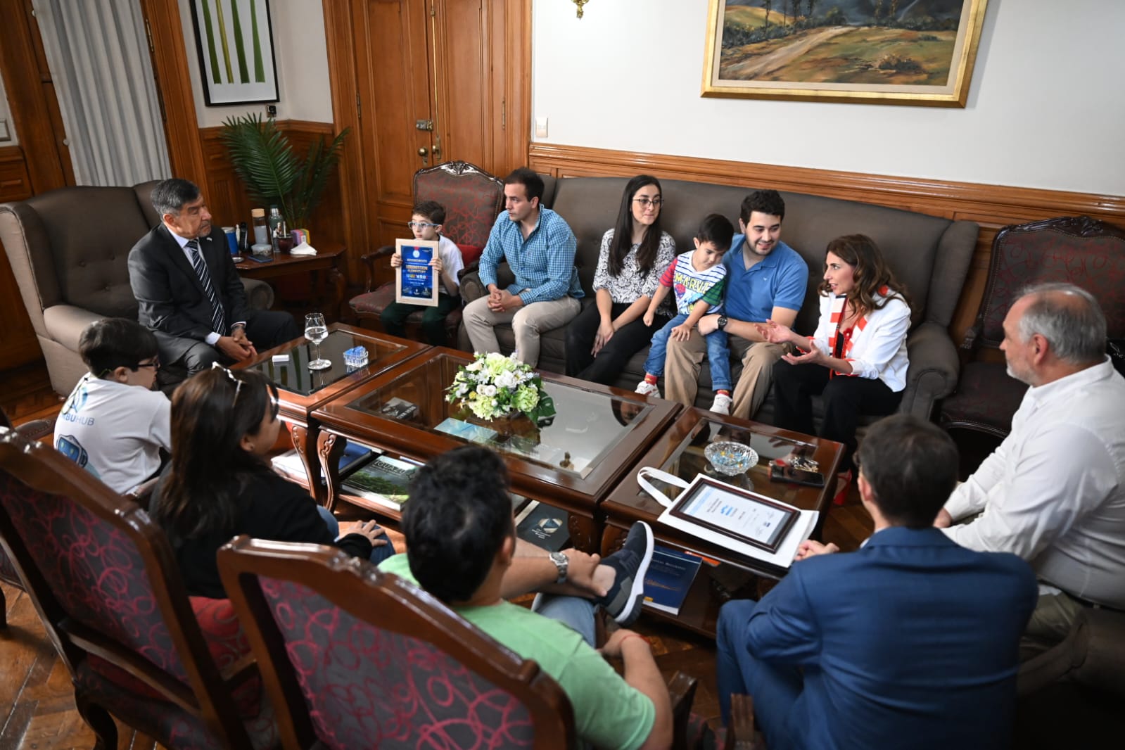 El vicegobernador a cargo del Poder Ejecutivo, Miguel Acevedo, recibió en Casa de Gobierno a los niños tucumanos Benicio González y Luca Di Pauli, ganadores del segundo puesto en la competencia nacional de la World Robotic Olympics realizada en el marco de la Exposición de Economías del Conocimiento (ExpoCon) 2025. Los alumnos, pertenecientes a la Academia Digital Ombú Hub de Yerba Buena, asistieron acompañados por el director de la institución, Nicolás Caro.