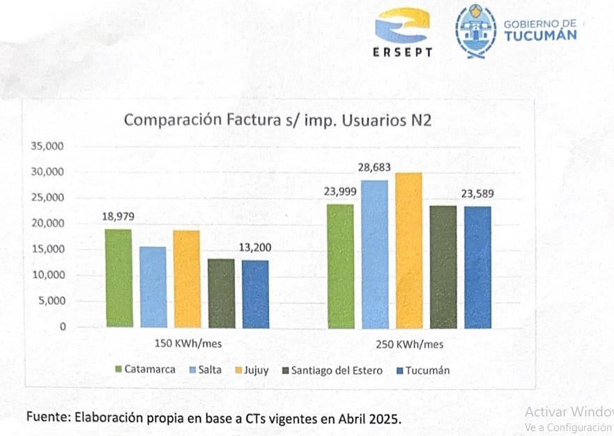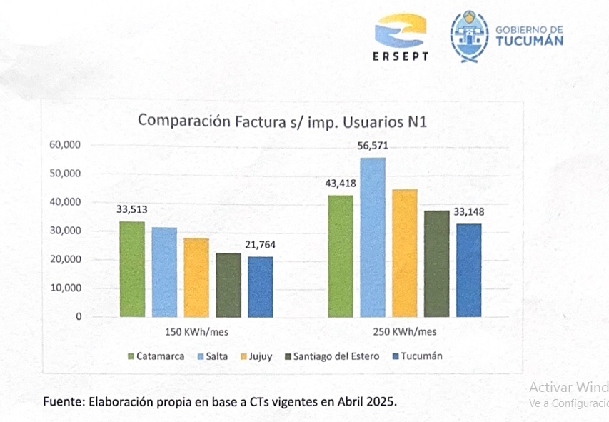 Desde el Ente Único de Control y Regulación de los Servicios Públicos Provinciales de Tucumán (ERSEPT), organismo que depende del ministerio de Economía y Producción, aseguraron que comparando los niveles tarifarios en abril de 2025 de las provincias del Noroeste Argentino (NOA), Tucumán tiene la tarifa de energía más baja.