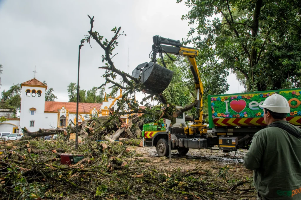 La Municipalidad de San Miguel de Tucumán desplegó un operativo para retirar los restos del ejemplar del ejemplar de gran porte y raíces expansivas, que en 2004 había sido declarado “Árbol Notable” de nuestra ciudad, por el Concejo Deliberante, por iniciativa del Municipio y de la Sociedad Amigos del Árbol.