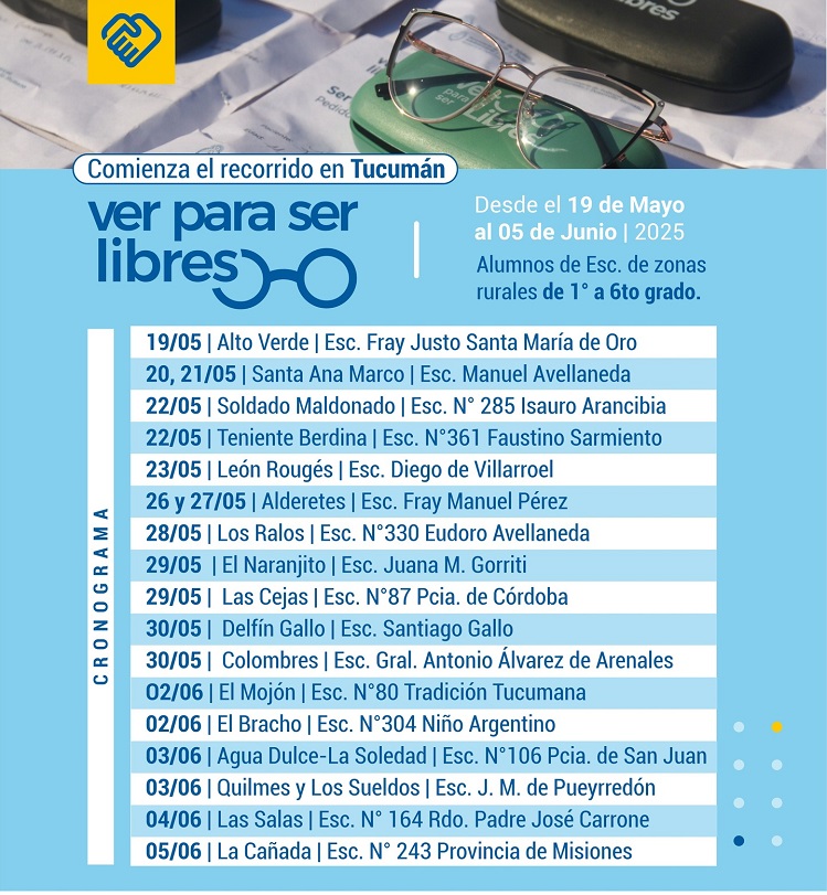 Ver para Ser Libres gira por todo el País a través de tráileres equipados y atendido por oftalmólogos que realizan test de agudeza visual y confeccionan gratuitamente lentes en caso de necesitarlos, a niños y niñas del nivel primario que concurren a establecimientos educativos públicos. En Tucumán, el programa funciona bajo la coordinación de la Secretaría de Articulación Territorial y Desarrollo Local, a cargo de Josefina Zárate.