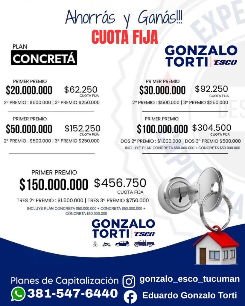 De la mano de Gonzalo Torti, los vecinos pueden acceder a este sistema que combina el ahorro mensual con la posibilidad de obtener importantes sumas de dinero a través de adjudicaciones. La propuesta se destaca por su cuota fija, lo que permite mayor previsibilidad a lo largo del plan.