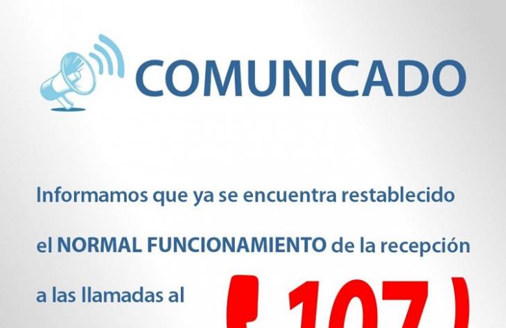 El Sistema Provincia de Salud a través de la Dirección de Emergencias confirmó que volvió a funcionar con normalidad la recepción de llamadas a la línea 107, que había salido de sistema por una horas.