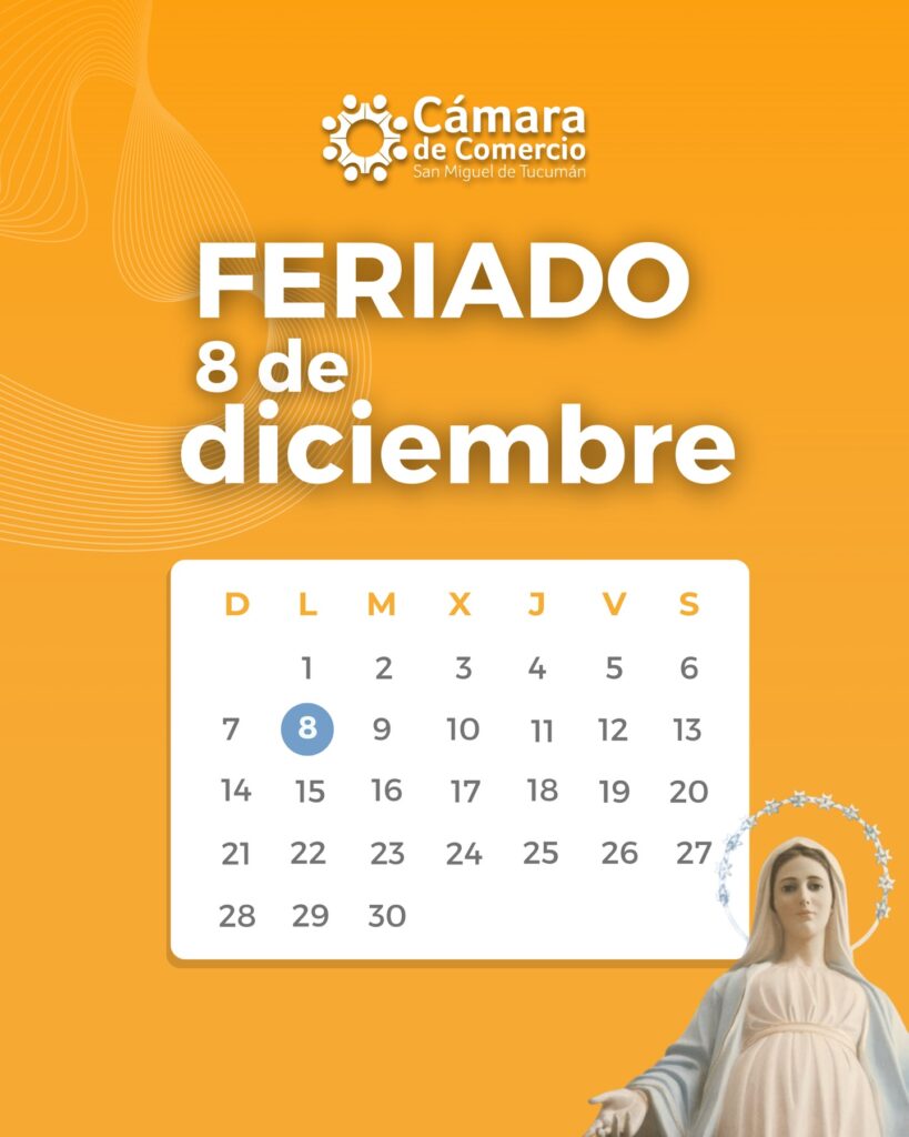 La presidenta de la Cámara de Comercio, Gabriela Coronel, confirmó que la mayoría de los locales de Tucumán no abrirá sus puertas el próximo lunes 8 de diciembre, Día de la Inmaculada Concepción de María, feriado nacional inamovible y último fin de semana largo del año.