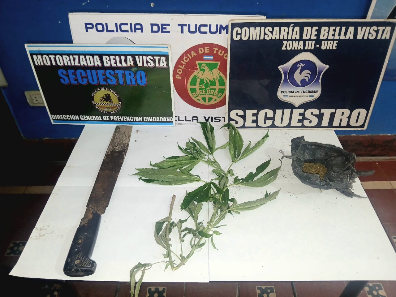Es así que se inició la búsqueda del mismo. Horas más tarde, personal de la División Patrulla Motorizada, logró divisarlo en las cercanías de un monte. Al advertir la presencia policial, el acusado intentó huir; sin embargo, los motoristas lo alcanzaron y procedieron a reducirlo. Durante la requisa se dieron con la novedad que tenía una planta de marihuana, picadura de la misma sustancia y un machete, todos estos elementos fueron secuestrados.