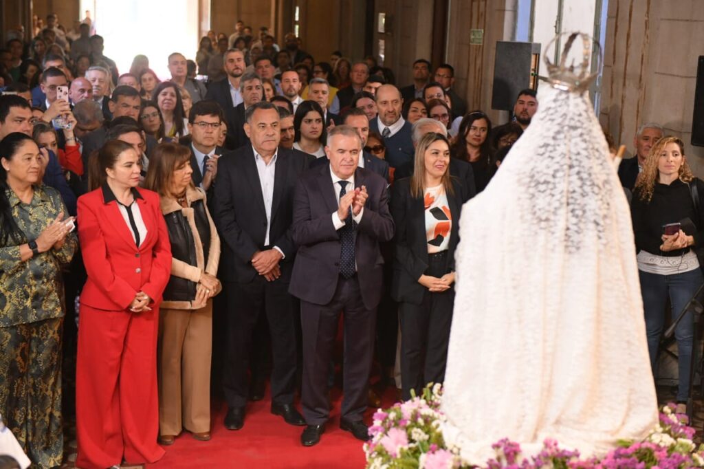 El gobernador Osvaldo Jaldo expresó: “Es una bendición para todos los tucumanos, ya que hoy la Virgen Madre, la Virgen de la Merced, ha llegado a la Casa de Gobierno que es la casa de todos los tucumanos. Es decir, que las decisiones que acá se toman, repercuten en cada una de las familias tucumanas. Y qué importante que la Virgen de la Merced hoy esté acá en nuestra casa”.