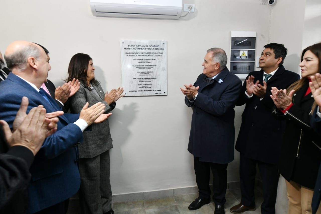 «La última que se inauguró fue en Trancas, en el otro extremo, ya con límite con Salta, y hoy estamos en la otra punta, en La Cocha, también inaugurando oficinas del Ministerio Popular y de la Defensa», comenzó diciendo Jaldo que destacó que desde que se van habilitando las nuevas delegaciones «ya hay casi más de 30.000 consultas, hay casi 14.000 derivaciones, es decir que el servicio y la decisión está causando ya sus efectos positivos».