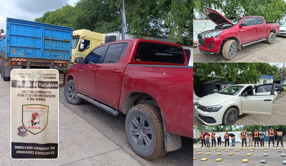 La Policía de Tucumán, a cargo de Joaquín Girvau Olleta, incautó un cargamento de 203 kilos de marihuana en el puesto fronterizo de 7 de Abril. Fue en el marco del Operativo Lapacho. Culminó con la detención de seis hombres y el secuestro del vehículo de carga en el que se transportaba la sustancia.