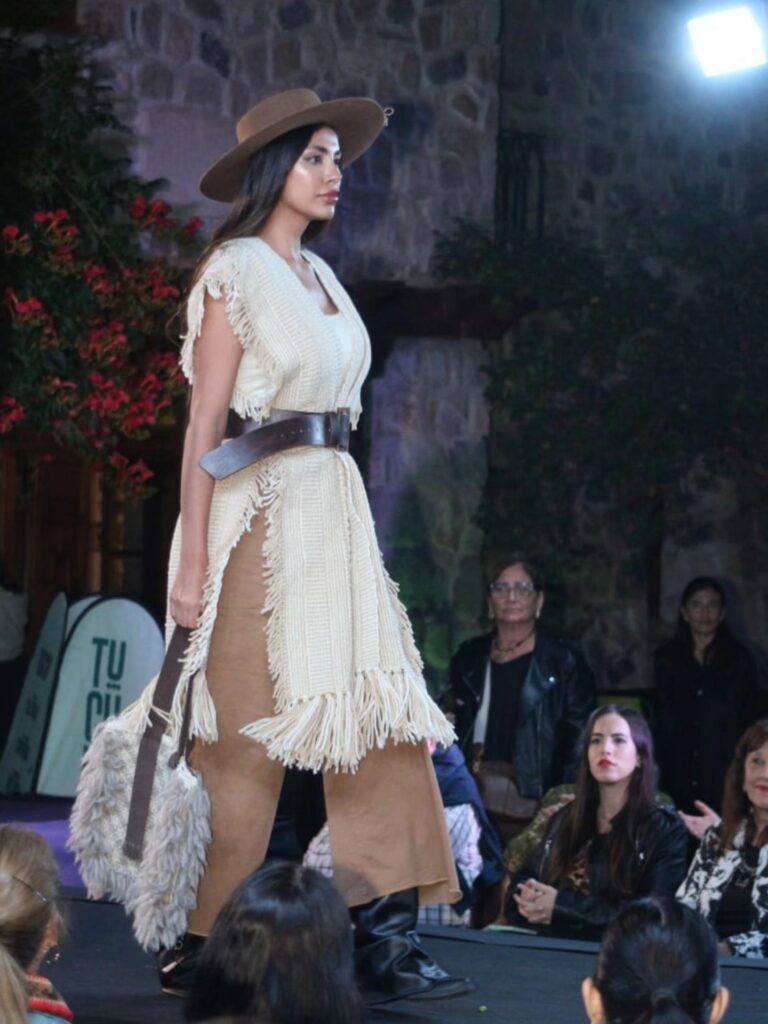 Sobre la pasarela se exhibió una propuesta integral que combinó colecciones de alta noche con el talento de la Ruta de los Artesanos. Se destacaron tejidos en telar, randas y tinturas naturales, revalorizando el trabajo textil centenario que identifica a los Valles Calchaquíes y genera empleo genuino en la región.