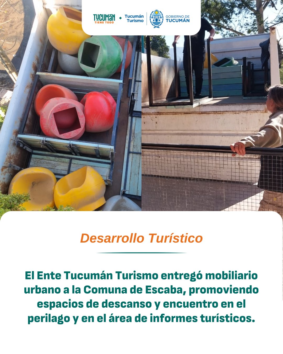 El Ente Tucumán Turismo entregó a la comuna de Escaba conjuntos de merenderos fabricados con material reciclable para ser instalados en el perilago, en una acción que busca potenciar la experiencia de quienes visitan este entorno natural único del sur tucumano.