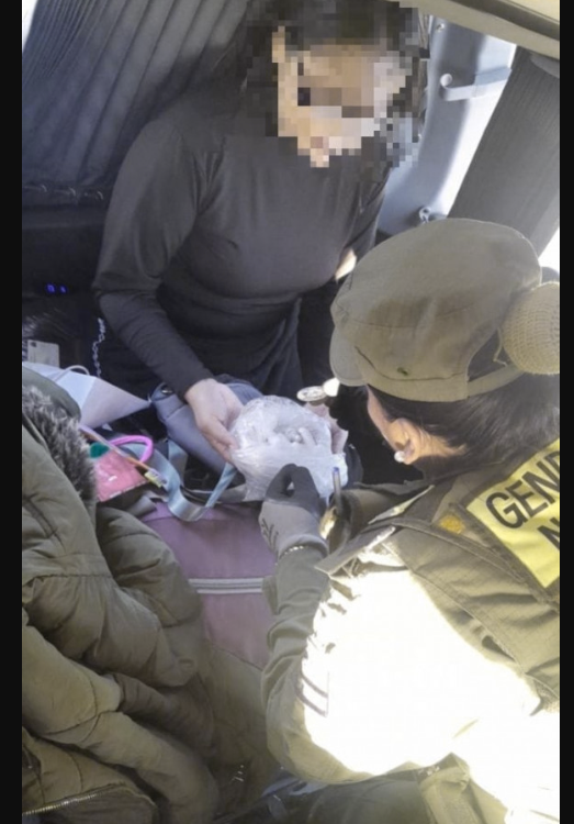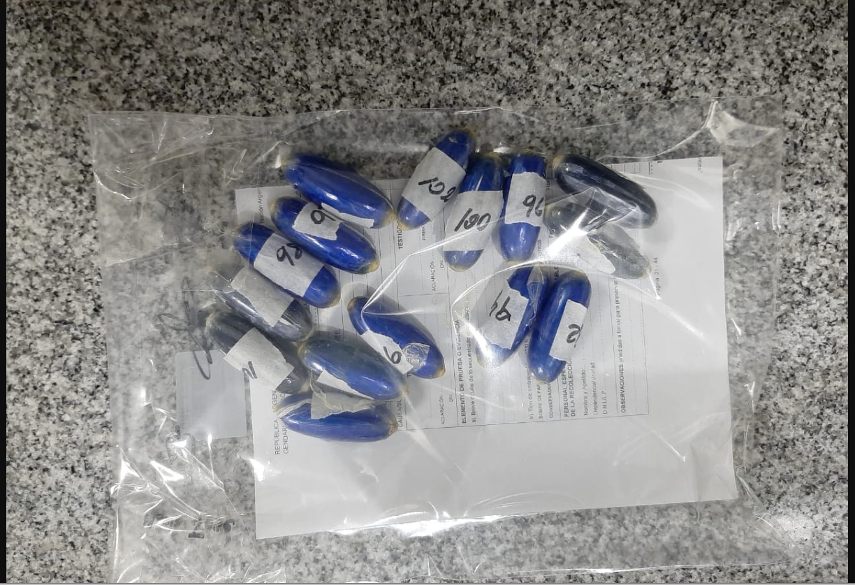 Mientras se realizaba la inspección, los funcionarios detectaron que una de las pasajeras poseía 12 cápsulas (con una sustancia blancuzca en su interior) dentro de su bolso de mano.