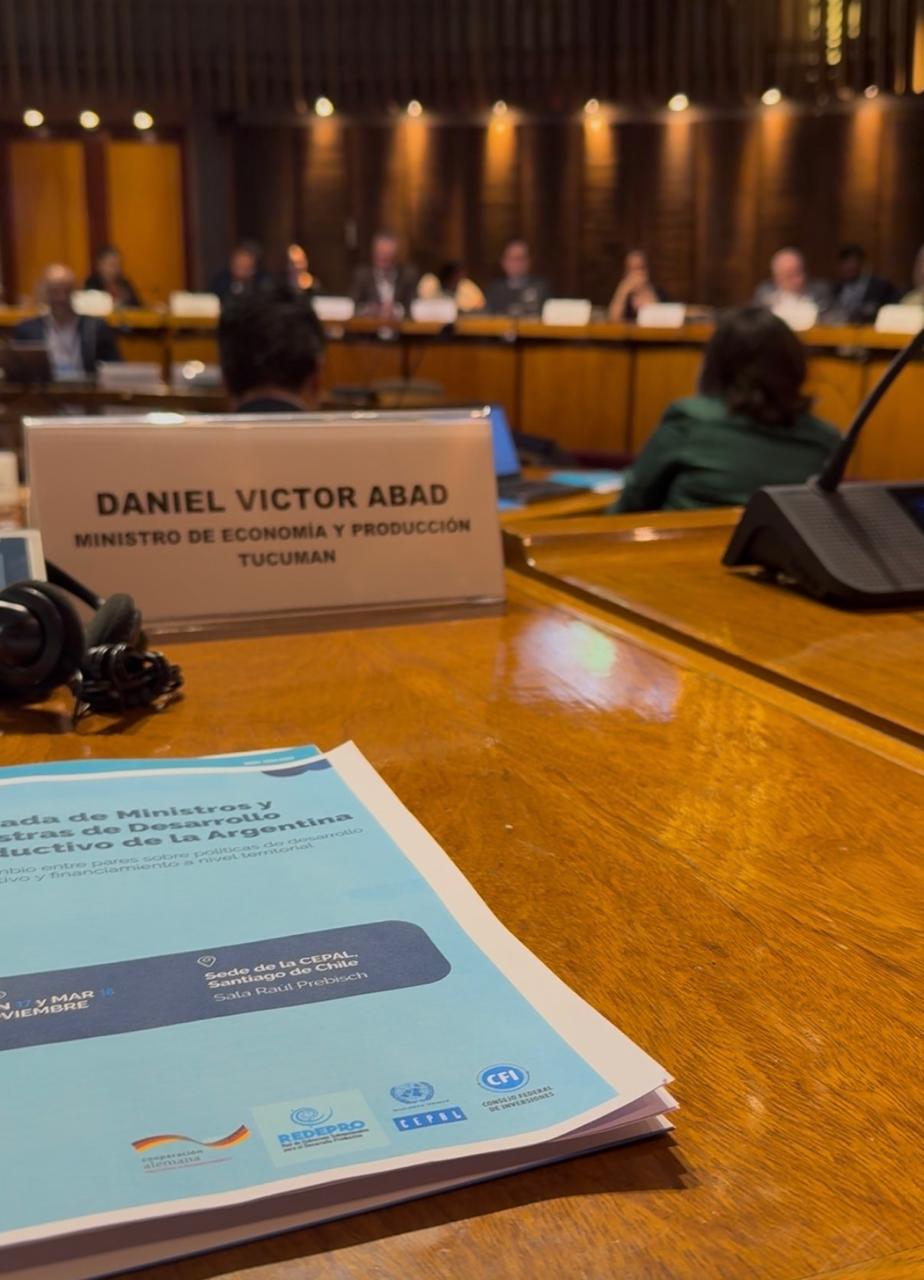 La Provincia de Tucumán formó parte de la Jornada de Ministros y Ministras de Desarrollo Productivo de la Argentina, organizada por la Comisión Económica para América Latina y el Caribe (CEPAL) y el Consejo Federal de Inversiones (CFI), que se desarrolló el 17 y 18 de noviembre en la sede del organismo regional en Santiago de Chile. El ministro de Economía, Daniel Abad, integró la delegación nacional que trabajó en la construcción de una hoja de ruta federal para el desarrollo productivo, la diversificación económica y el financiamiento territorial.